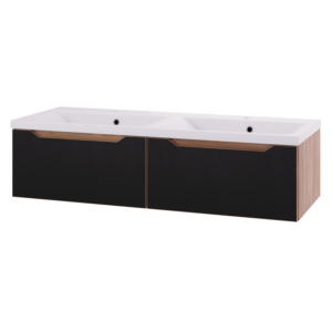 Emma baderomsmøbel i lakkert eller eikefinér bringer en unik spa-følelse inn i hverdagen din. Med sitt unike utseende og høye kvalitet er dette møbelet mer enn bare en funksjonell del av badet ditt. Emma forvandler den daglige rutinen din til en opplevelse av luksus og velvære. Den myke glansen av lakkerte overflater eller den naturlige varmen fra eikefinér skaper en visuell harmoni som vil inspirere deg hver eneste dag. Men Emma handler ikke bare om utseende. Den er bygget for å vare. Med materialer av høy kvalitet og en solid konstruksjon gir den deg en følelse av trygghet og pålitelighet. Du kan stole på at Emma baderomsmøbel vil være en trofast følgesvenn i årene som kommer. Gjør badet ditt til et sted der du kan unnslippe, slappe av og lade opp. Emma vil ta vare på resten.