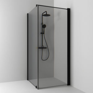 Skoga Foldehjørnedusj med fast vegg/dør – Sort Matt