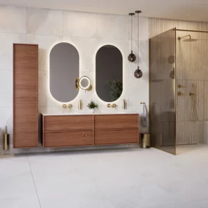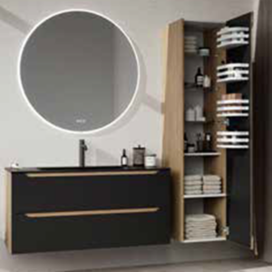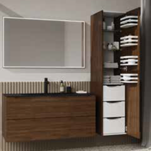 LinnBad Ingrid Høyskap m/hyller og skuffer – Sort Eik
