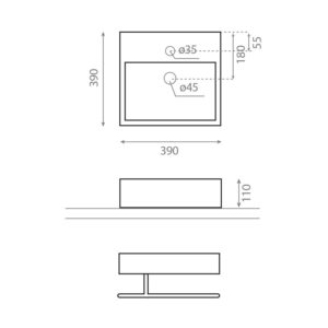 - Mål: 390 x 390 x 110 mm.