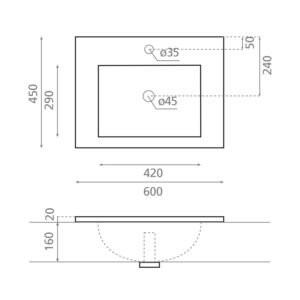 Stram og trendy servant for nedfelling. Resin materiale. Med overløp.