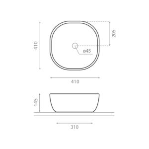 Porselensservant i ekstra tynt porselen med flotte avrundede hjørner. Uten overløp. Mål: 410x410x145mm.
