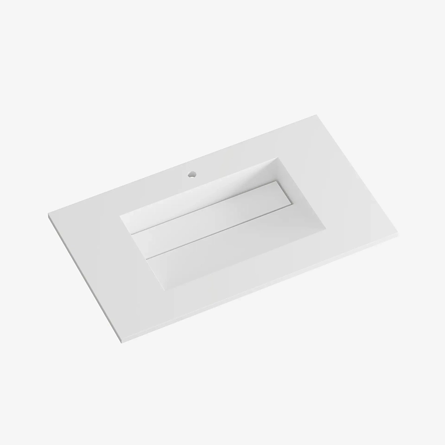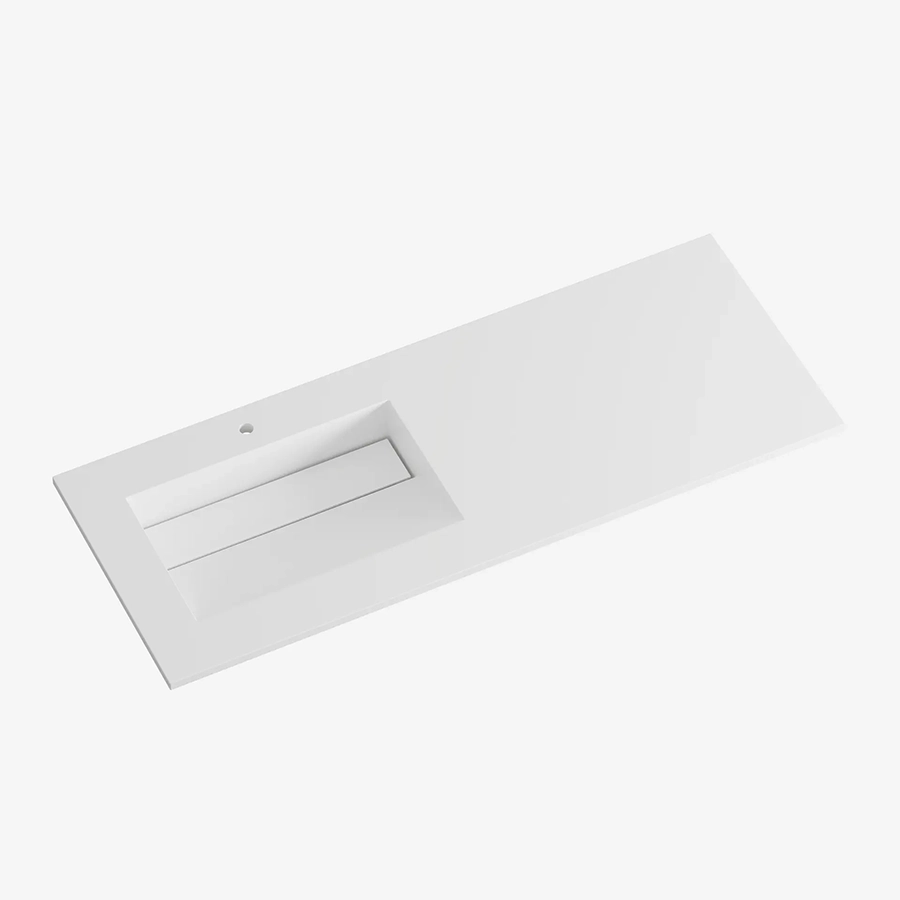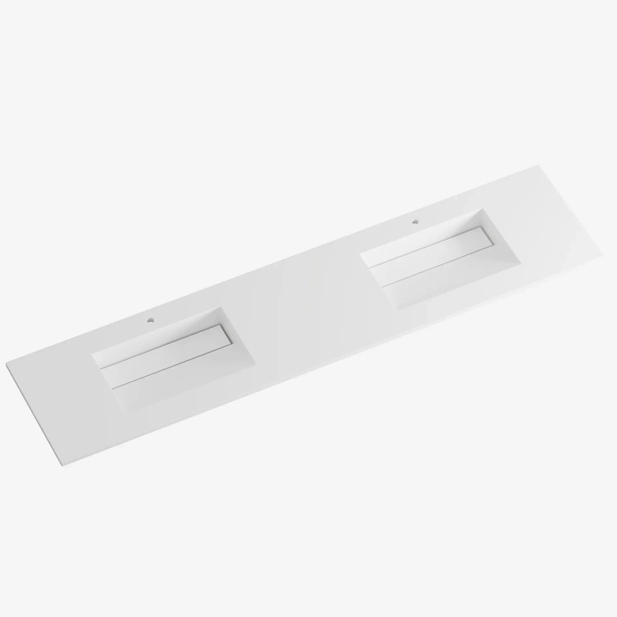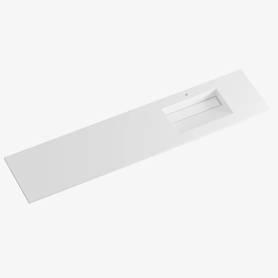 Cannes heldekkende servant med kranhull er en stilren servant i solid surface som kombinerer moderne design med praktisk funksjon. Den heldekkende utformingen gir et rent og helhetlig uttrykk på badet.