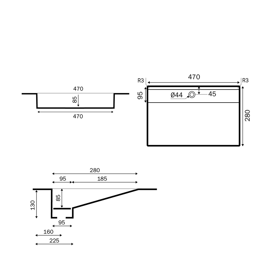 Servanten har en skrå bunn som leder vannet effektivt mot avløpet. Dette gir bedre drenering og enklere rengjøring i hverdagen.
