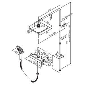 Hånddusj med tre innstillinger som skiftes ved hjelp av trykknapp på dusjhodet. Vender mellom kaldt og varmt vann i termostatkranen.