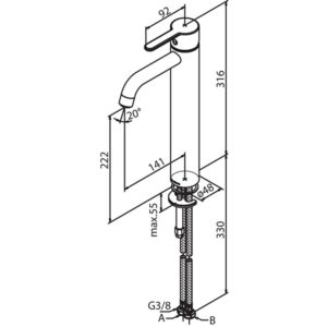 Høy servantkran for bolleservant. Dansk, stilig og høy. Det er Silhouet, som med sitt slanke, rene uttrykk passer fint inn i dagens og morgendagens kjøkken og bad. Med kaldstart og rub-clean. Ekstra holdbar PVD behandlet overflate.