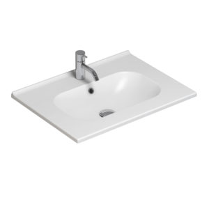 Rette linjer og ovalt basseng med god plass rundt. Sanitærporselen er et sterkt, keramisk materiale med et mykt og avrundet design på alle kanter, både i bassenget og benkeplaten. Overflaten er hard, glatt og blank, og de avrundede kantene gjør den svært rengjøringsvennlig. Servanter i sanitærporselen krever minimalt vedlikehold – selv etter mange års bruk. Servanten tåler ikke skuremidler.