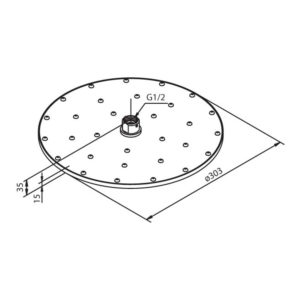 Elegant dusjhode for takdusj. Metall. Ø 300 mm.
