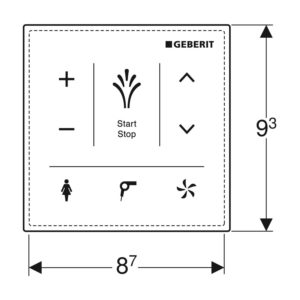 Veggbetjeningspanelet gir en praktisk og enkel måte å kontrollere forskjellige funksjoner på Geberit AquaClean. Det gir brukerne en intuitiv og lett tilgjengelig kontrollenhet for å tilpasse og styre vask- og dusjfunksjonene.