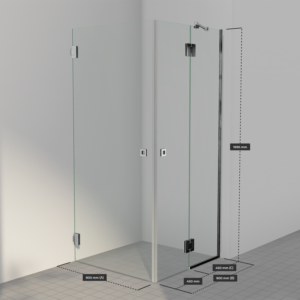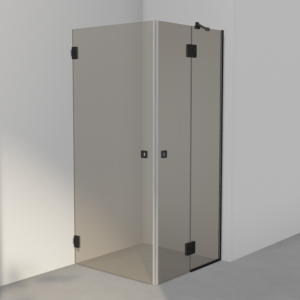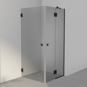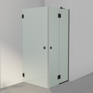 Dusjhjørne med en mindre fast vegg og to dører