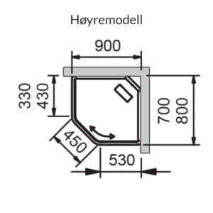 - Størrelser: 700×900, 800×900, 900×900 og 1000×1000 mm