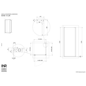 Navet i Edge er hengslet med aksel i rustfritt stål – et utmerket eksempel på perfeksjonen i mekanikken som kjennetegner serien. Hjørnene på rammen er i massiv aluminium med innovativ konstruksjon som skjuler alt som ikke er estetisk. Alle INR dusjglass er herdet, noe som gjør dem betydelig sterkere enn vanlig glass. Husk at all tilskjæring og hulltaking ikke er mulig etter at glasset er herdet.