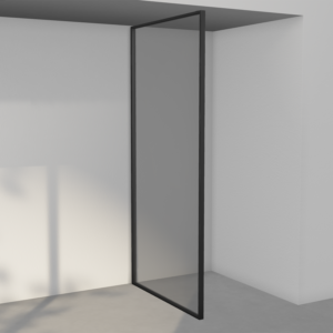 Hjørnene på rammen er i massiv aluminium med innovativ konstruksjon som skjuler alt som ikke er estetisk. Modellene med dør løfter elegant ved åpning og lukker tett mot gulvet takket være skjulte og utskiftbare tetninglister innfelt i rammen.