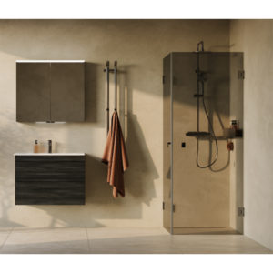Fold sammen når du går inn. Fold ut for å lukke. Linc Flex ble utviklet for å spare plass på det lille badet. Seriens konstruksjon kombinerer løftehengslet i Linc Original med det spesielle foldehengslet som gjør det mulig å folde døren dobbelt. Hengslet limes på utsiden av glasset, og innsiden blir dermed helt slett uten skruer. Dette gjør det lettere å holde dusjen ren. Mellom glass og dører og i bunnen er det tetningslister som du kan bytte ut ved behov. Kompletter dusjløsningen din med dusjhyllen Pile som integreres i veggprofilen. Pile kommer i de samme utførelsene som dusjveggen. Velg om du vil skru dusjveggen til vegg på vanlig måte eller lime med Safe-Fix. Linc Flex blir produsert av en høy andel resirkulert aluminium i homogent materiale med markedets sterkeste overflatebehandling. Hele dusjveggen kan resirkuleres etter livssyklusen på 15 år eller mer.