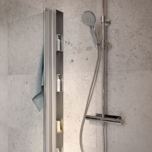 - Justerbar dusjstang: 1795–2095 mm fra gulv til underkant takdusj