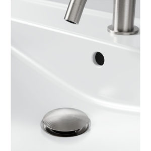 Bunnventilen i rustfritt stål matcher servantbatteriets utførelse. Den er en universalmodell. Under montering kan du velge å ha den åpen eller med pop-up. For servanter uten overløpshull, anbefaler vi å holde bunnventilen åpen for å unngå vannsøl.