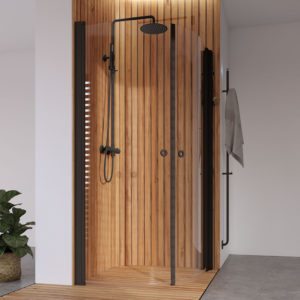 Perfekt fargetilpasset dusjserie Arc Original, håndkletørker Line og tilbehørene i INR by Primy.