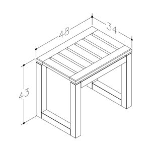 Dekorativ og praktisk benk i heltre og naturlig eik farge. Denne benken passer fint på alle baderom, bruk den som sittebenk eller avlastning for håndklær.