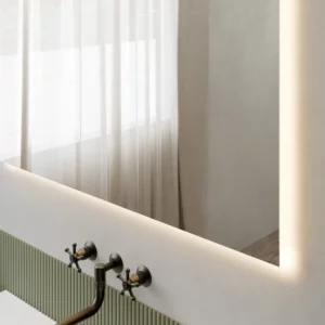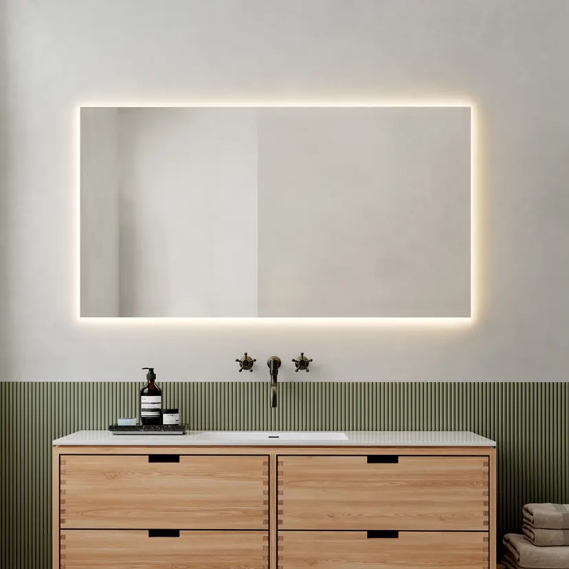 LED-lyset gir et behagelig hvitt lys på 3400 K, som skaper en balansert og avslappende atmosfære rundt speilet. Med en CRI-verdi over 95 gjengir lyset farger svært naturtro. Du får derfor optimale lysforhold til sminke, barbering og daglig pleie. Det firkantede designet gir badet et stramt og moderne uttrykk og passer perfekt over servantskap i både minimalistiske og klassiske miljøer.