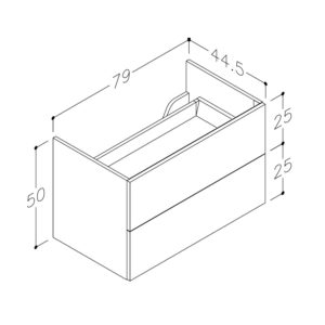 Rowan-serien tilbyr et stort utvalg i størrelser og farger. Møbelet har to skuffer og skinner med dempet lukking. Dette er et benkeskap uten utsparing til vannlås i den øverste skuffen og benyttes gjerne som ekstra skuff i kombinasjon med et servantskap og benkeplate. Benkeplatene kommer i laminert trestruktur som matcher møbelet, eller tynnere HPL-plater, noe som gir flere muligheter for ulike stiler og størrelser opptil 200 cm bredde. Standard grep følger med, og grep i andre farger kan kjøpes som tilleggsprodukt. Underskapet er forborret tilpasset standard grep, og hvis du ønsker andre grep, må møbelet bestilles deretter.