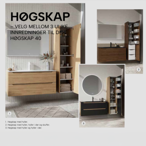 Høyskap med opphengsbeslag for enkel montering. Høyskap i 40 cm bredde kan leveres med flere typer innredning. Velg riktig GREP til Ingrid for ditt personlige uttrykk.