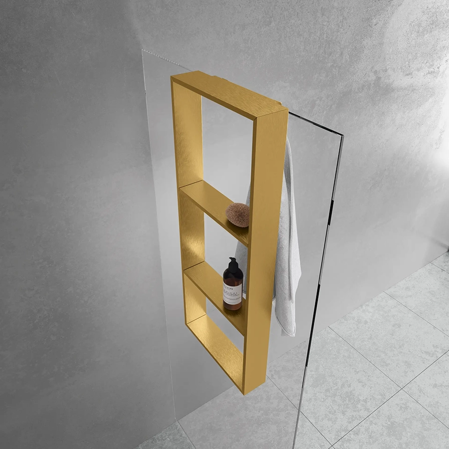 Novellini dusjhylle gir deg en praktisk og gjennomtenkt oppbevaringsløsning i dusjsonen. Hyllen monteres enkelt på fastvegger og passer til glass med tykkelse fra 6 til 8 mm. Dusjhyllen har tre innvendige hyller som gir god plass til sjampo, såpe og andre dusjprodukter. På utsiden finner du to håndklekroker, slik at du enkelt kan henge opp håndklær eller kluter.