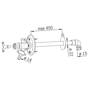 Frostfri utekran. Leveres med løs nøkkel. DN 20 Frostfri slangekran med dreneringsnippel og vakuumventil. G 3/4 utløp, Standardlengde 150 – 450 mm.