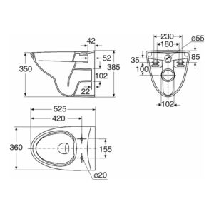 Porsgrund Glow 65 vegghengt toalett uten spylekant