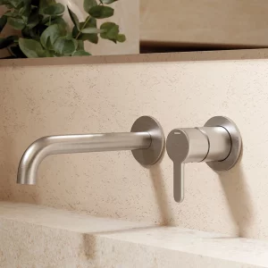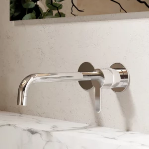 Silhouet servantkran for innbygging med rosetter er elegant montert i veggen for et rent og moderne uttrykk på badet. Servantkranen med rosetter spiller på lag med resten av Silhouet-serien for innbygging med rosetter. Servantkranen har kaldstart slik at du ikke bruker unødvendig med varmtvann i tillegg til rub-clean i tuten slik at du enkelt kan rengjøre dersom det oppstår kalkaleiringer. Velg mellom hele 7 ulike overflater og skap ditt drømmebad med Silhouet servantkran for innbygging. Utforsk Silhouet-serien for produkter i samme overflate for en gjennomført stil på badet.