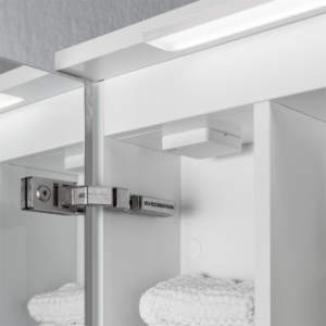Skuru speilskap er tilgjengelig i bredder fra 50 til 120 cm, og monteres sikkert på veggen med det pålitelige EasyMount-systemet. Speilskapet er utstyrt med praktiske funksjoner som stikkontakt, magnetholder for småting og servantbelysning for ekstra komfort og funksjonalitet. Speil med en vid åpningsvinkel på 125° som gjør det lettere å stå flere ved siden av hverandre på badet og muliggjør enklere renhold.