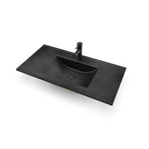 Dette elegante og moderne designet er det perfekte tillegget til ethvert moderne bad. Denne servanten er laget av høykvalitets porselen, og er ikke bare slitesterk, men også enkel å rengjøre og vedlikeholde. Det integrerte overløpet sikrer at vann aldri renner over, noe som gjør det til et praktisk valg for daglig bruk. Den slående matt svarte finishen gir et snev av raffinement og eleganse til baderomsinnredningen. Det er et allsidig design som kan komplementere en rekke stiler, fra industriell til minimalistisk.