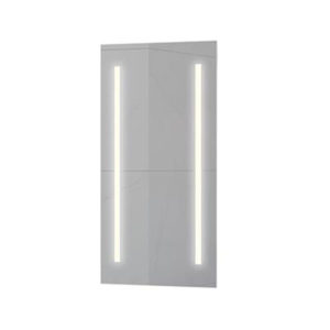 Elegant speil med dimbare LED lyskilder, en på hver side av speil flaten. Godt egnet ved behov for ekstra belysning på badet. Monteres enkelt på vegg med medfølgende festebeslag, og kobles til strøm av godkjent el-installatør. Ekstern dimmer må benyttes for å kunne dimme lyset.