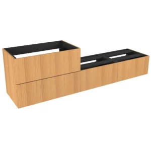 Skap ditt eget baderomsmøbel – Velg mellom en klassisk heldekkende servant eller en moderne benkeplate med bolleservant. Personliggjør din opplevelse ytterligere ved å velge mellom blandebatteri og pop-up i krom, sort eller gull. Du kan også legge til LED-belysning i skuffen eller legge en LED list under servanten for å skape den perfekte atmosfæren på ditt baderom.