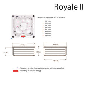 VikingSpas Royale II fungerer med en 1 fas 16 A sikring, men for optimal utnyttelse av alle funksjoner anbefaler vi minimum 1-fas 230V/25A.